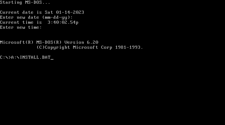Step 9: When the machine powers back up, it will ask to verify the date and time, then display the DOS version.