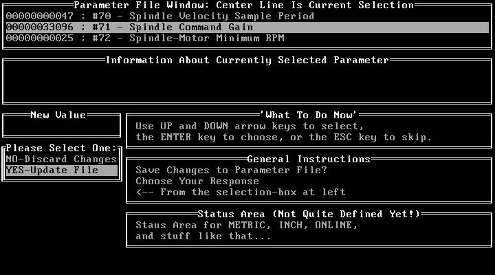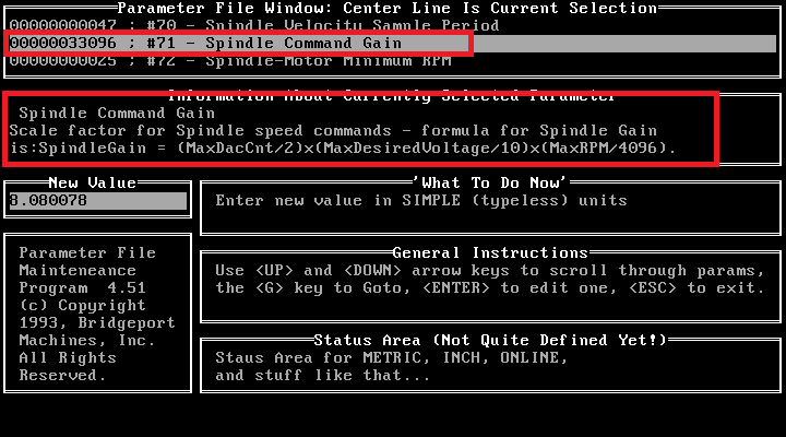 Step 12: One last parameter to check is Parameter #71. This parameter controls the spindle output gain. When running spindle, if the RPM displayed on the control doesn’t match the commanded spindle RPM, you can adjust this value to get more accurate spindle RPM.
