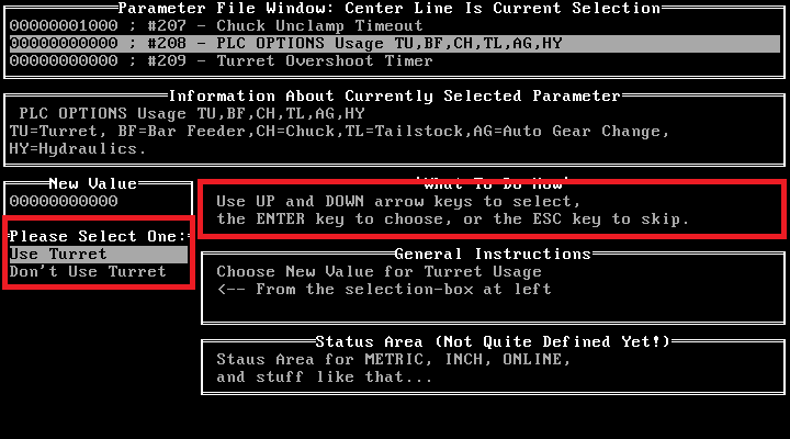 Parameter #208: This parameter enables functionality of things like the tool turret, pneumatic tailstock, and other features.